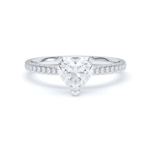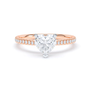 A luxury diamond set mount for a heart shape centre stone. The diamond set shoulders offer the extra sparkle to compliment the centre stone This mount is wedding band fit. Diamond weight 0.20cts approximately.